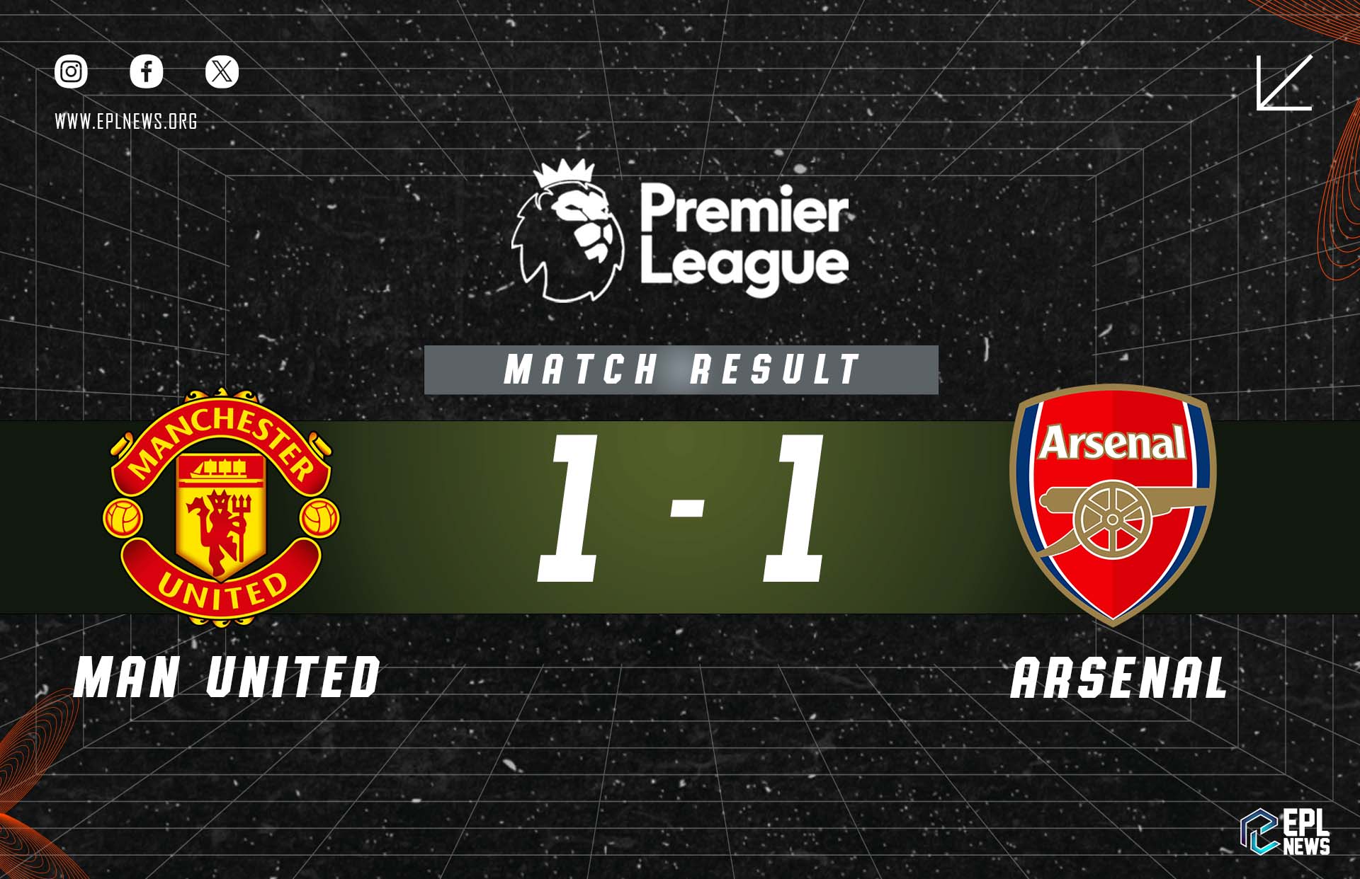 Arsenal est revenu de l’arrière pour obtenir un match nul 1-1 contre Manchester United en Premier League, marquant le deuxième face-à-face consécutif (H2H) entre les deux équipes à se terminer à égalité après 90 minutes.