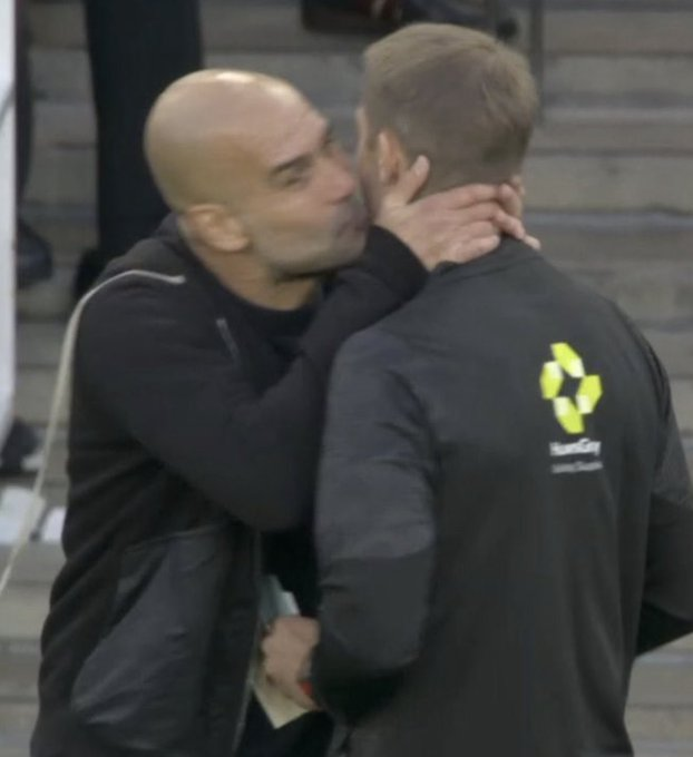 Guardiola rejetant le quatrième fonctionnaire de la conversation avec un picotement sur la joue. C’est ça.