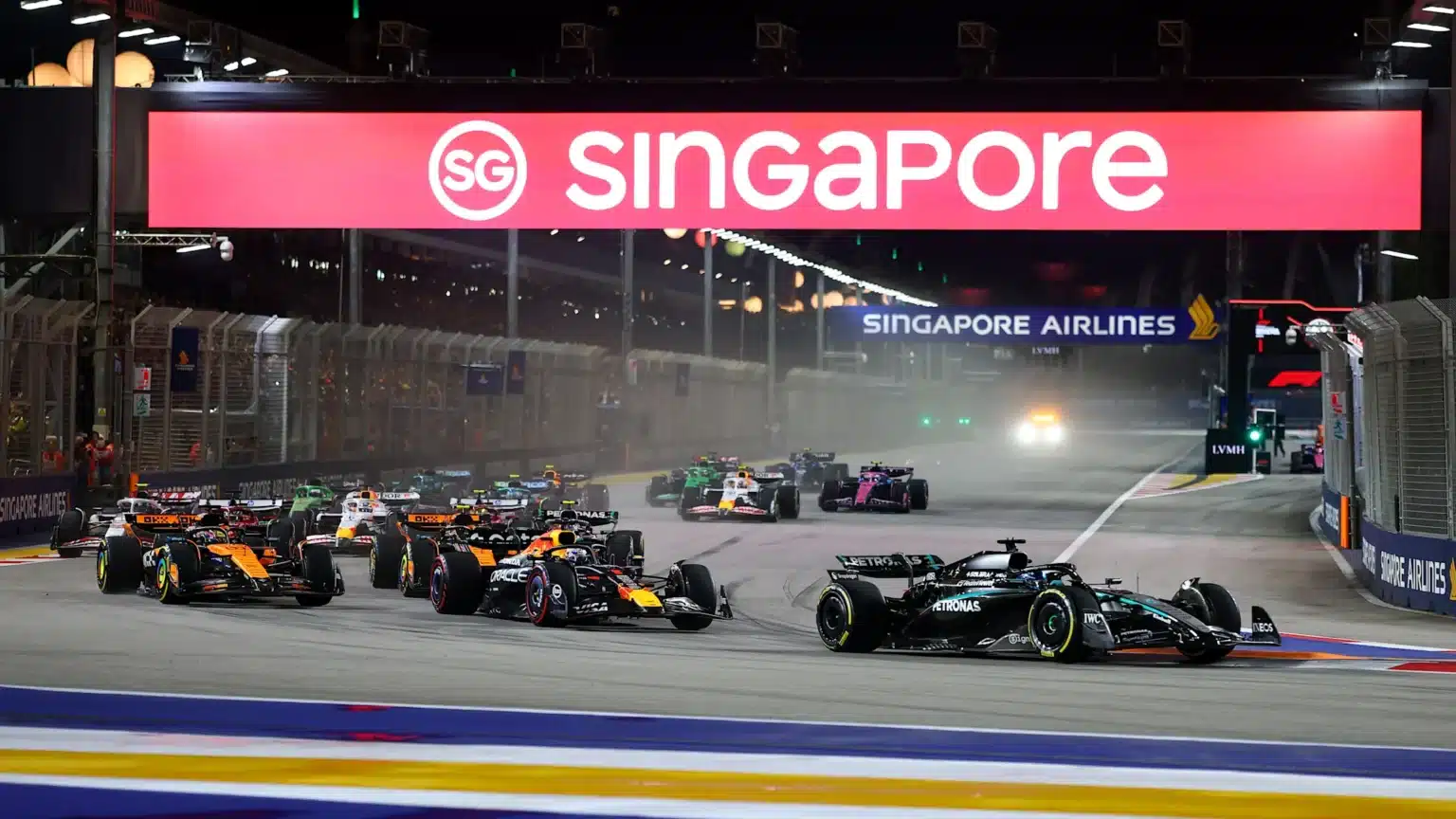 George Russell de Mercedes a converti la pole position en victoire au Grand Prix de Singapour, alors que McLaren a revendiqué les titres consécutifs des équipes malgré Lando Norris et Oscar Piastri frappant les roues sur le premier tour.