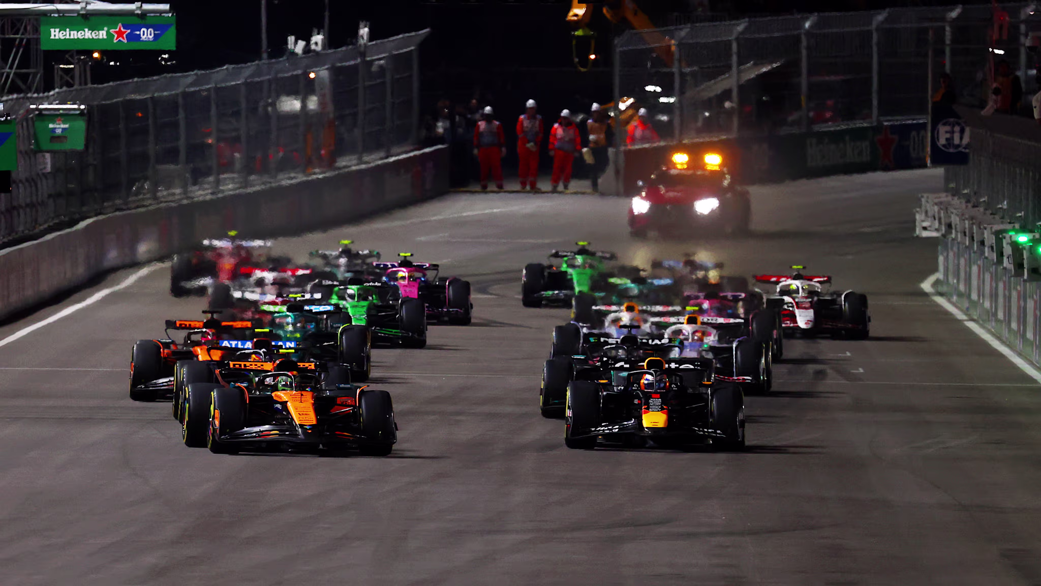 Parti de la pole position, Norris s’est engagé profondément dans le virage 1 et a chuté à la troisième place, derrière Verstappen et George Russell. Capable de reprendre une place à ce dernier suite aux arrêts aux stands, Norris a accru son avance au championnat alors que son équipier McLaren, Oscar Piastri, n’a pu gérer que la quatrième place.